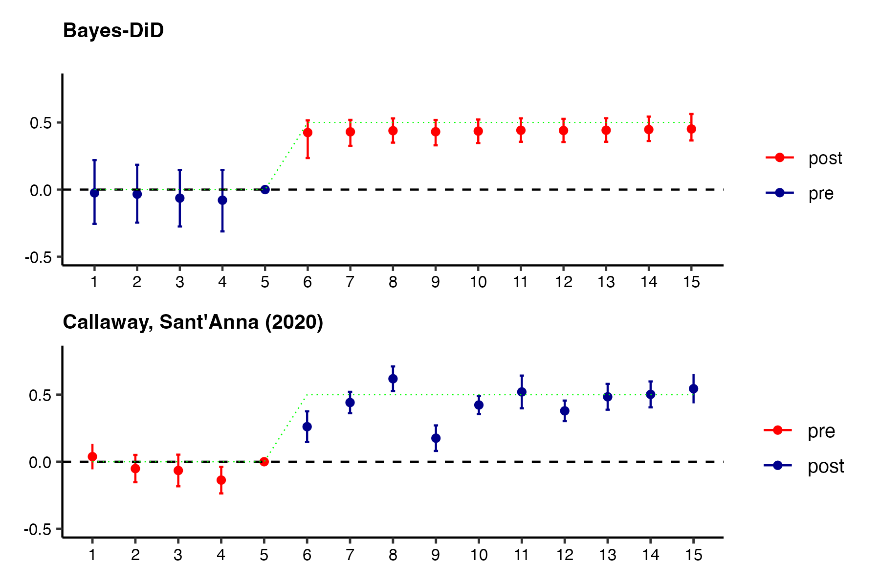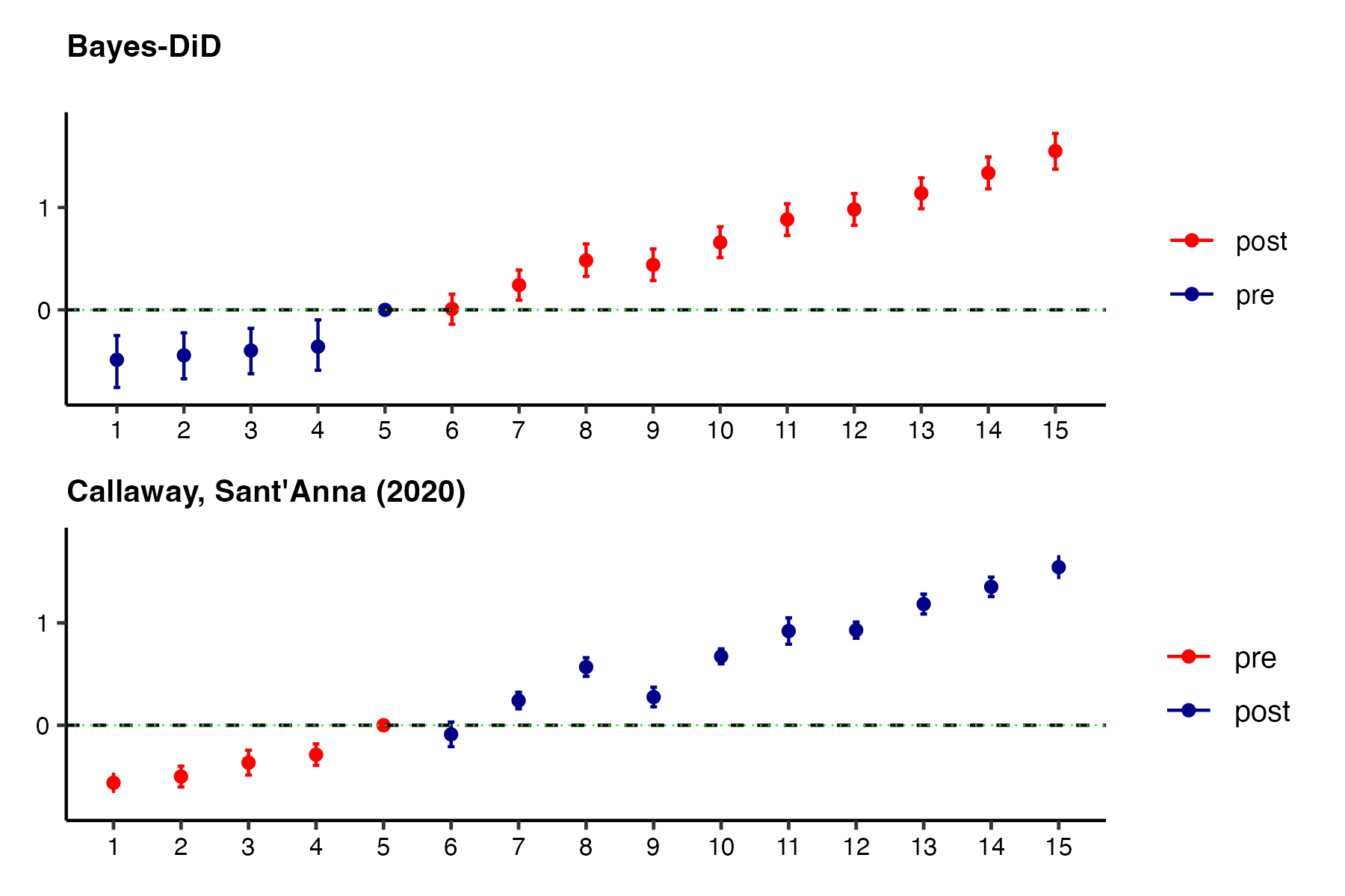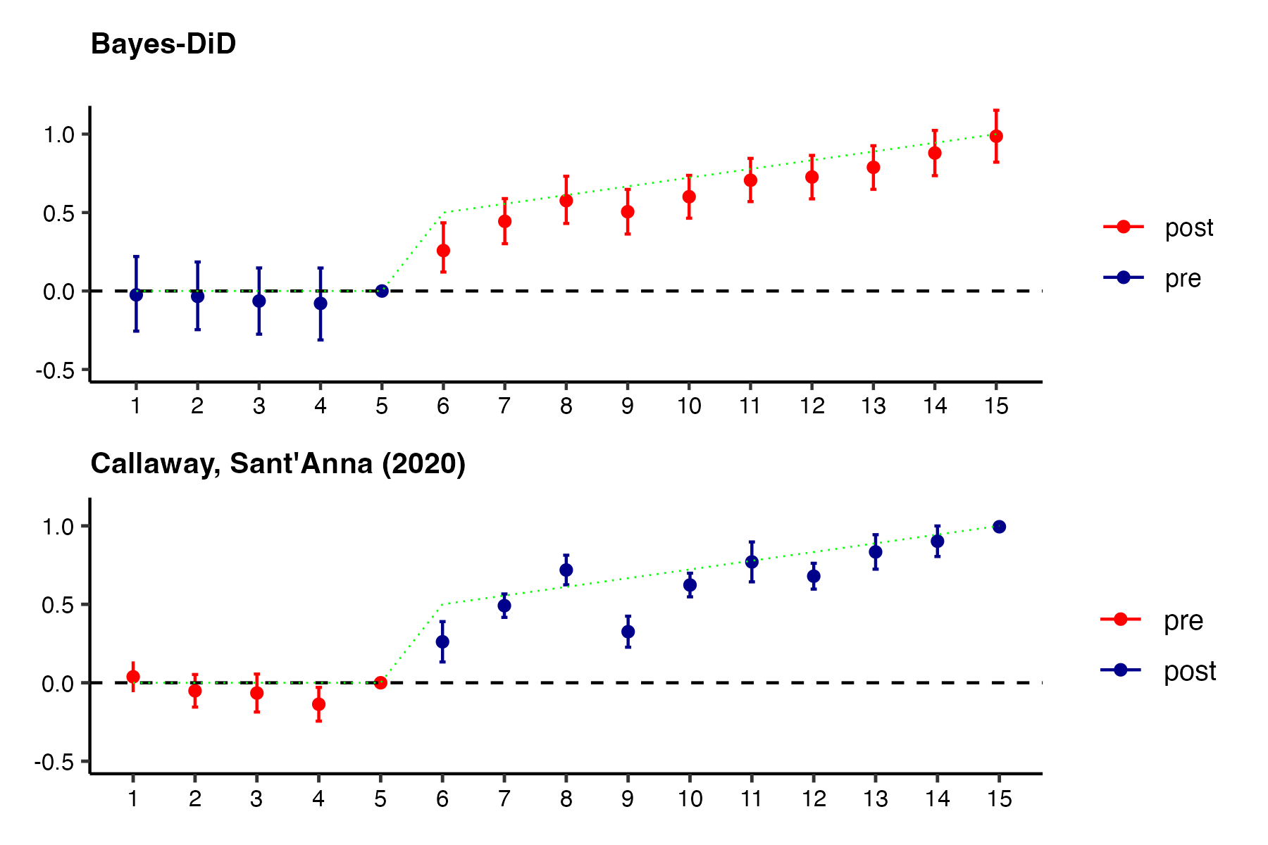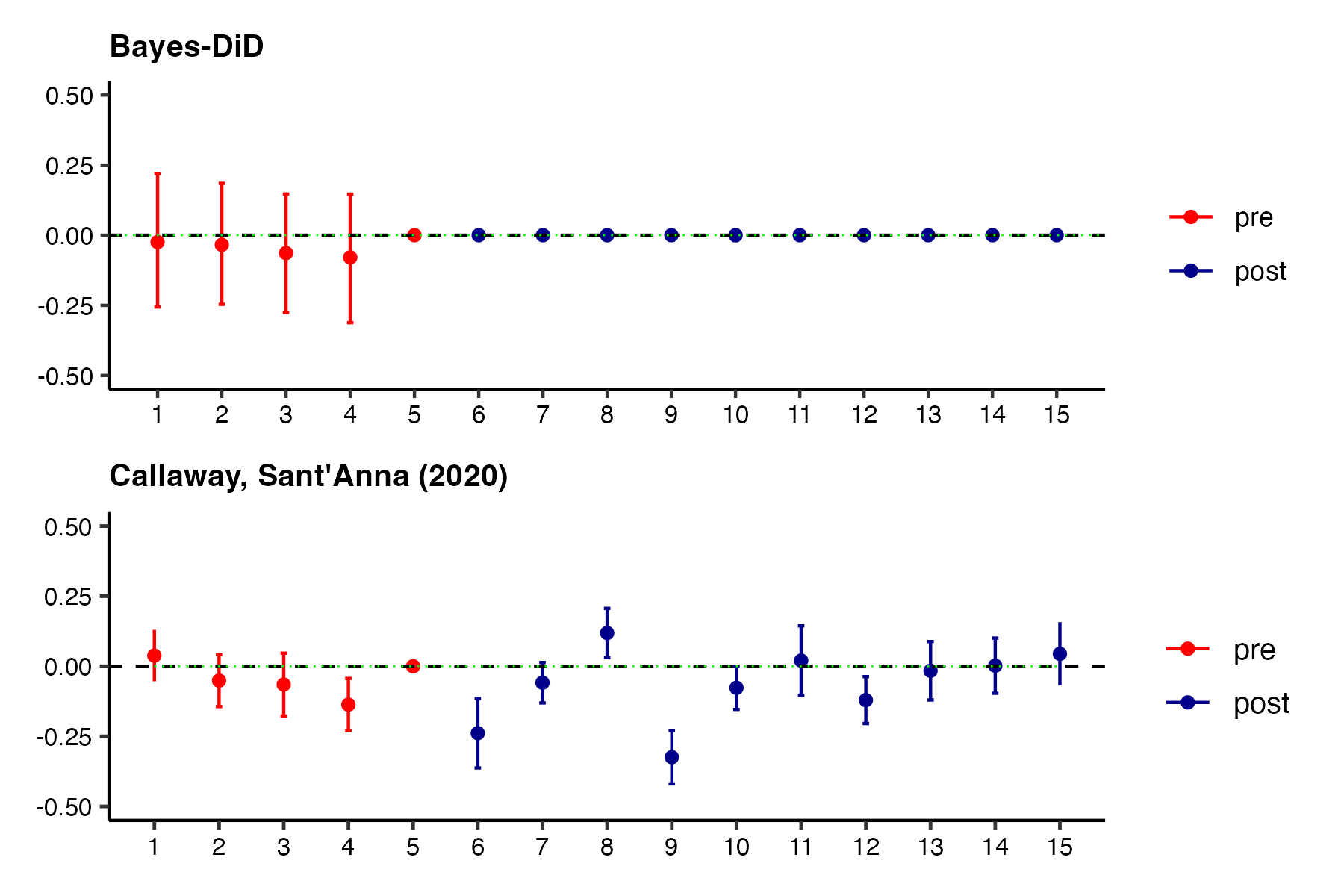 Corrected by implied violation based on posterior-median of pre-treatment model (similar to Rambachan and Roth 2023)